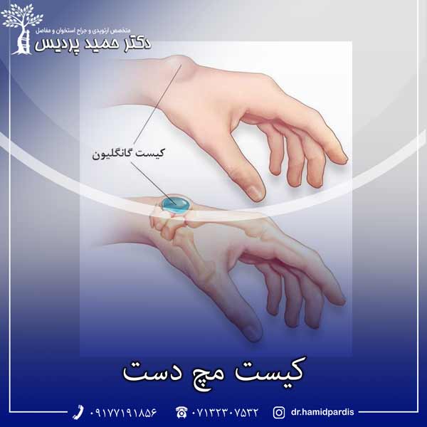 دست ها عمدتا متحرک ترین عضو بدن هستند از این رو کوچکترین درد و ناراحتی به وجود آمده در این قسمت بیش از پیش حائز اهمیت است. کیست مچ دست که نام علمی آن گانگلیون می باشد. در بخش مچ به وجود می آید. این عارضه علل و دلایل بسیاری را دارد و عمده مردم به آن مبتلا می شوند. برای گروه خاصی احتمال وقوع ندارد و اگر شما خود را در معرض ابتلا به این بیماری می دانید بهتر است که به بهترین ارتوپد شیراز ، دکتر حمید پردیس مراجعه کنید که در پی معاینات و بررسی های لازمه متوجه نوع و شدت بیماری شما شود.